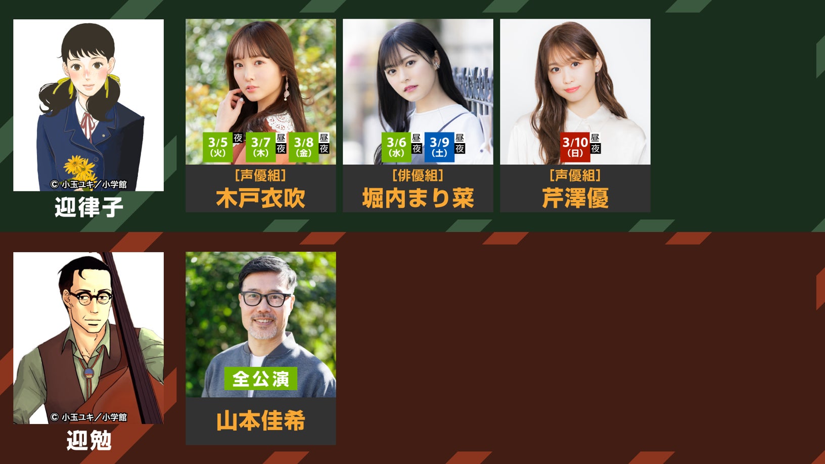 • アニマックス朗読劇として初の朗読劇化が行われ、声優や俳優の出演と生演奏が楽しめる