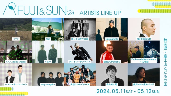 富士山こどもの国で開催されるキャンプインフェス「FUJI & SUN’24」の第二弾アーティストが発表されました。