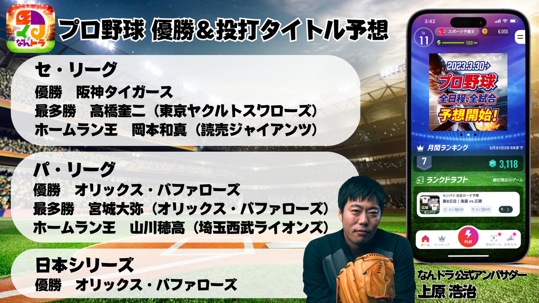 ◎スポーツ予想の「なんドラ」待望のアプリをリリース!上原浩治氏によるプロ野球予想も大公開!