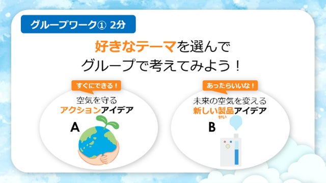 この授業は、小学生に空気の重要性を学ぶための取り組みで、パナソニック 空質空調社の社員講師と共に、空気の課題やアクションについて話し合いました。