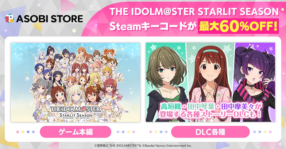 - 『アイドルマスタースターリットシーズン』の本編とDLCが最大60%OFFで購入可能