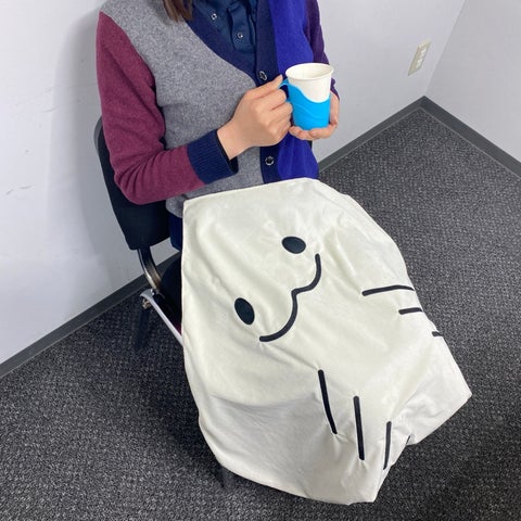 - ブランケットはなめらかな手触りで大人も包み込むことができるサイズ感