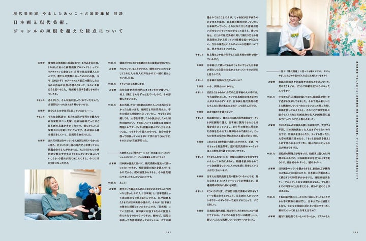 さらに、古家野雄紀と現代美術家のやましたあつことの対談や、玉井伸弥との合作作品、ヒカリタケウチとのコラボ作品も紹介されています。