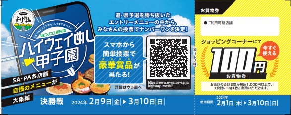 また、決勝戦終了までの期間中にエントリーメニューを注文すると、お買物券(100円分)がプレゼントされます。