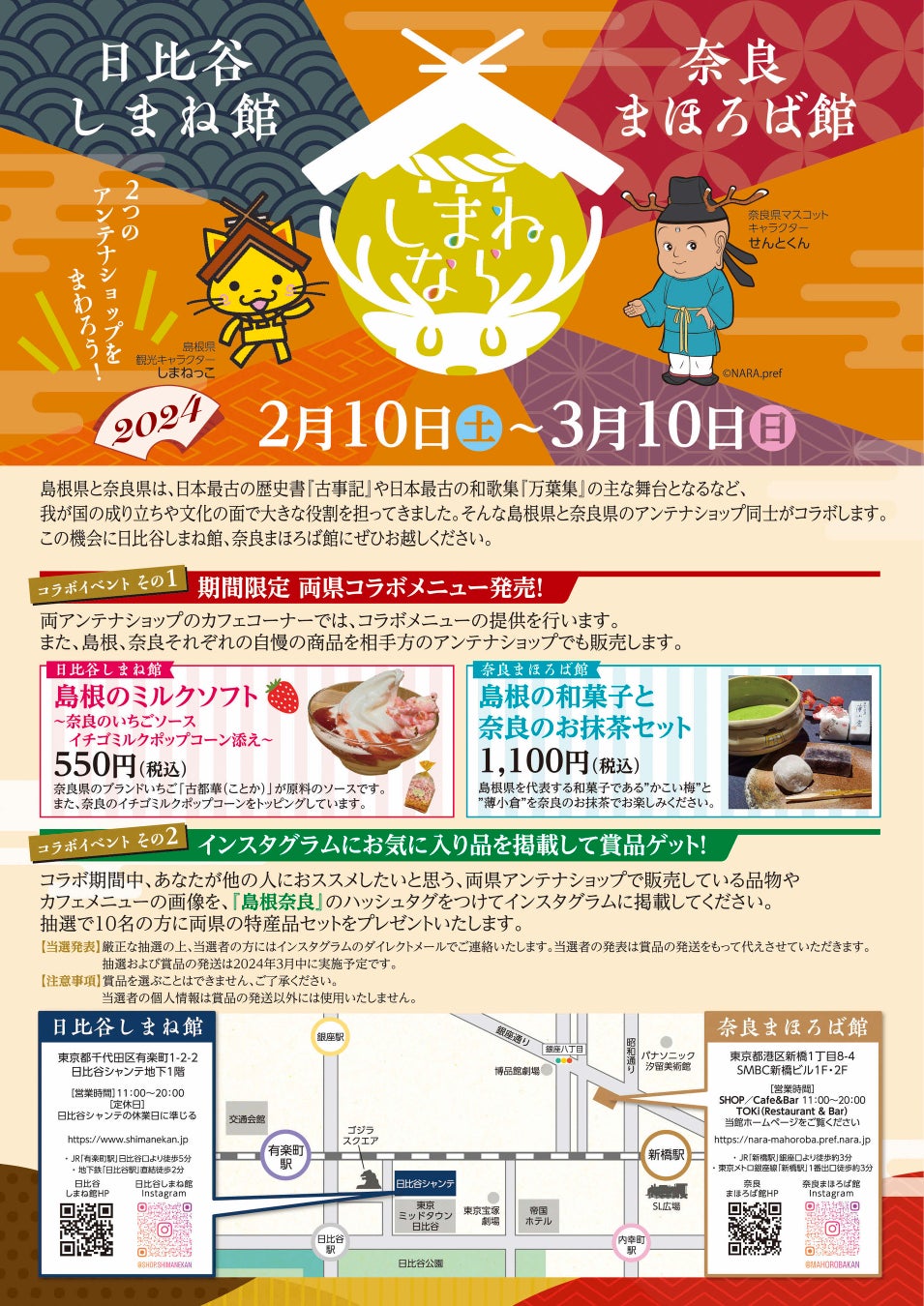 ぜひ、2月10日から3月10日までの期間中に日比谷しまね館と奈良まほろば館にお越しください!