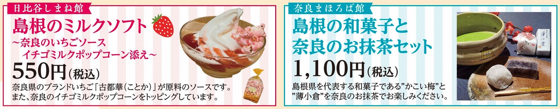 島根県と奈良県のアンテナショップがコラボイベントを開催します!日比谷しまね館と奈良まほろば館で行われるこの期間限定のイベントでは、両県のコラボメニューを楽しむことができます。