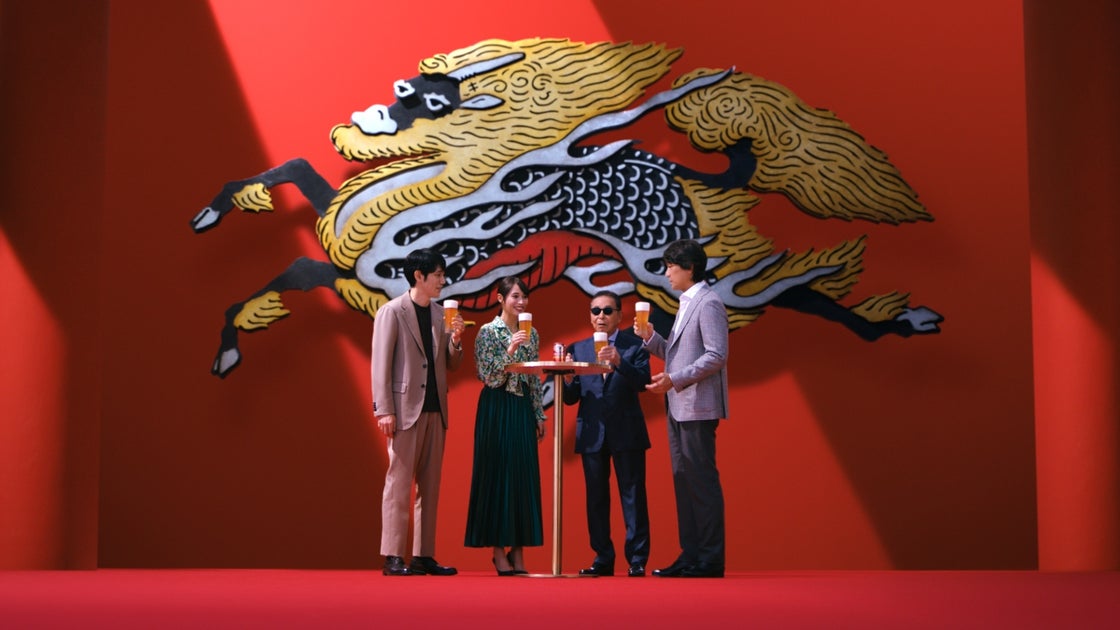 4人が新しい「本麒麟」を堪能している姿は印象的です。
