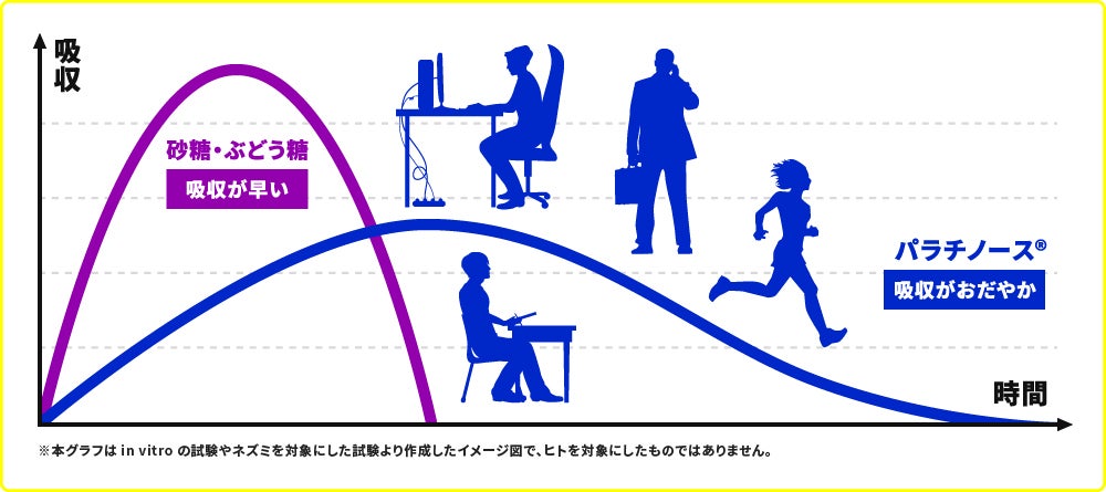 DM三井製糖は、スローカロリーを体現するPalatinose®という糖質を開発しており、持続性エネルギー源として注目されています。