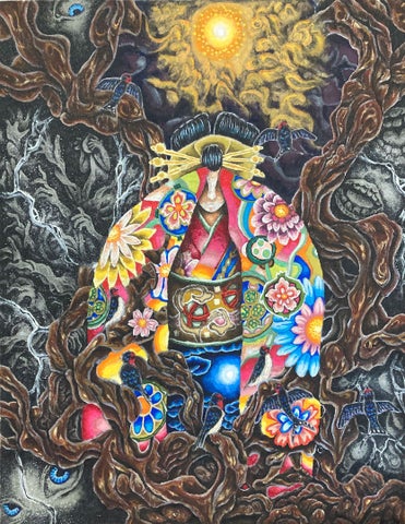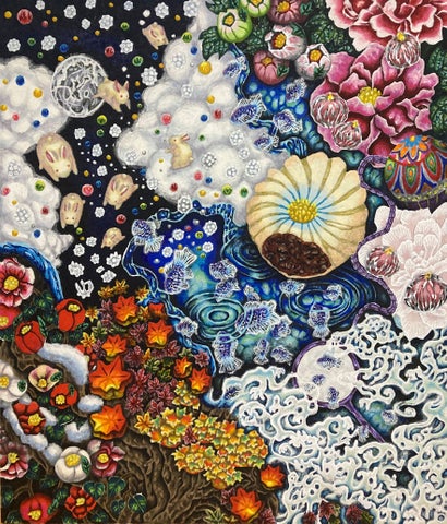 岡部仁美は自然の普遍性を作品に表現し、華やかで色彩豊かな絵からモノクロの絵まで幅広い作品を制作しています。