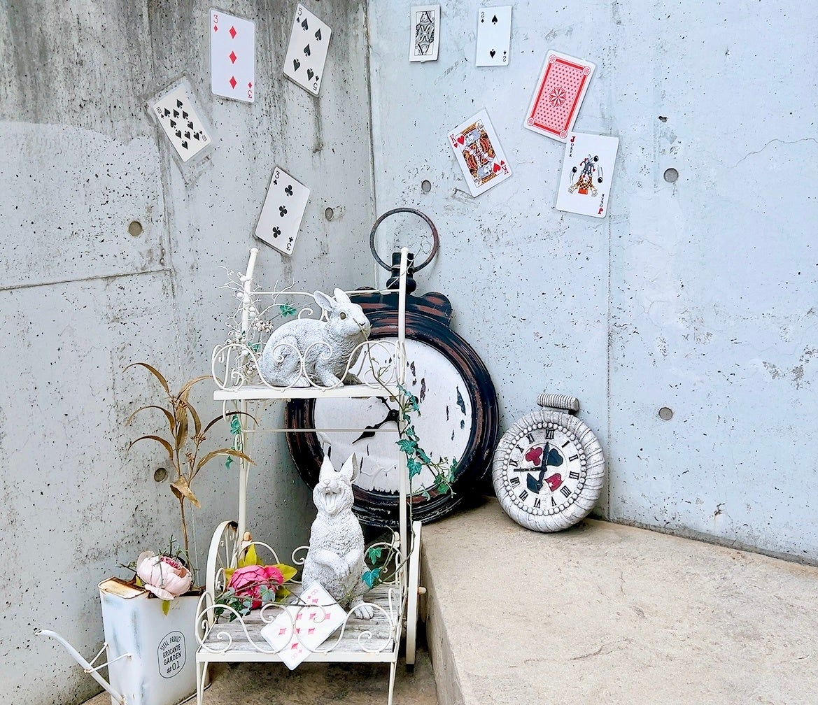 - 「不思議の国のアリス」をテーマにしたメルヘンチックな雰囲気のカフェ