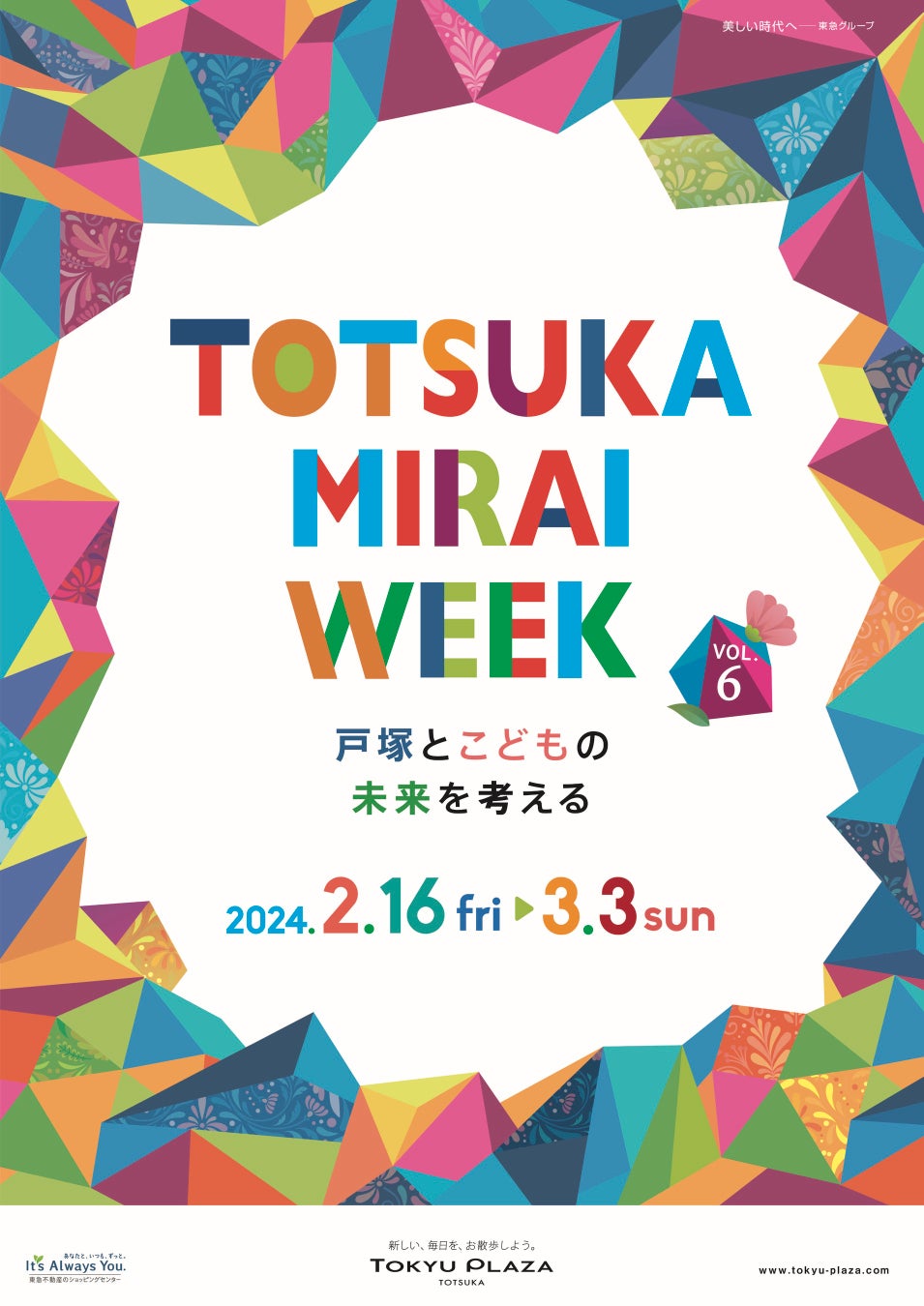 2024年2月16日から3月3日まで、神奈川県横浜市の商業施設「東急プラザ戸塚」では、「戸塚とこどもの未来を考える」をテーマにしたイベント「TOTSUKA MIRAI WEEK」の第6弾が開催されます。