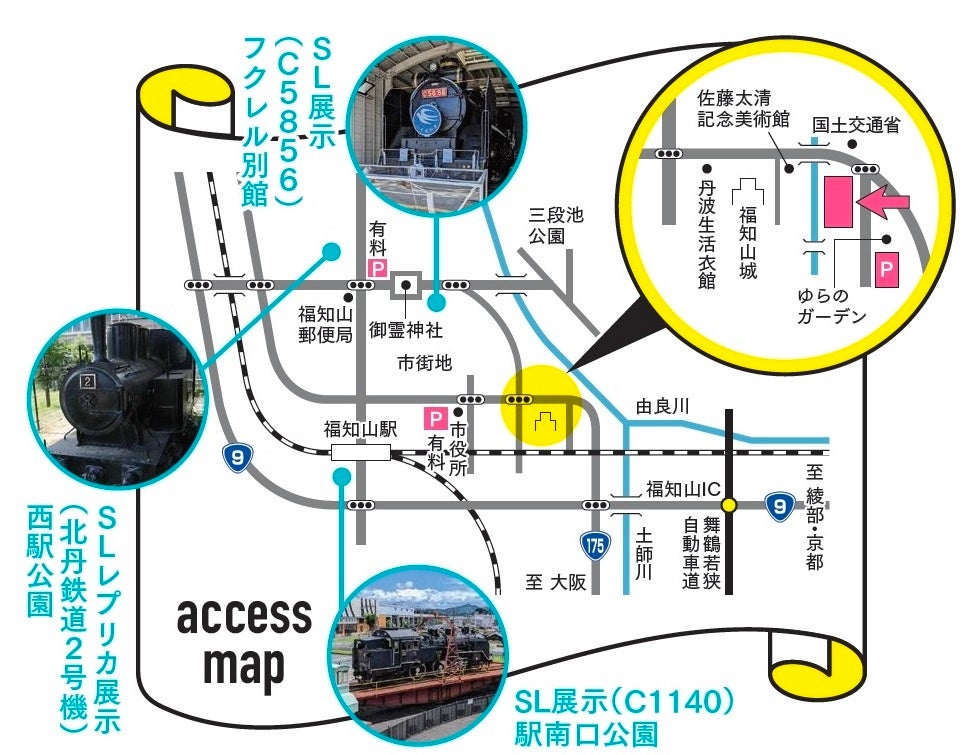 - 福知山鉄道館フクレル、福知山城公園、交流体験エリア、歴史展示エリア