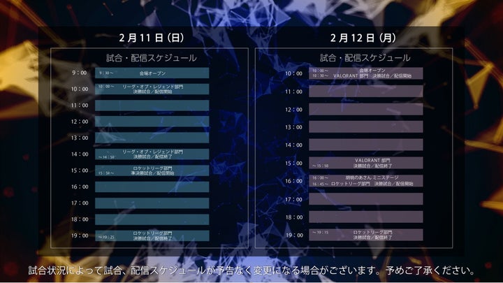 この大会では、リーグ・オブ・レジェンド、VALORANT、ロケットリーグの各部門の優勝校が決まります。