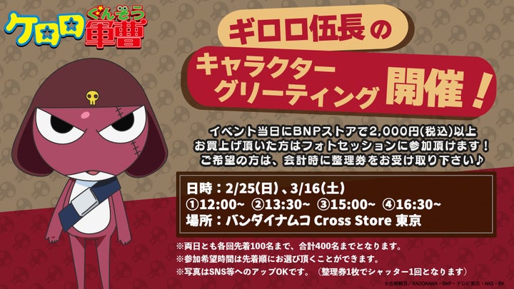 - 「ケロロ軍曹」キャラクターグリーティングイベントも開催