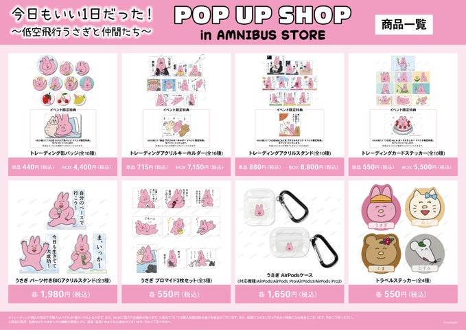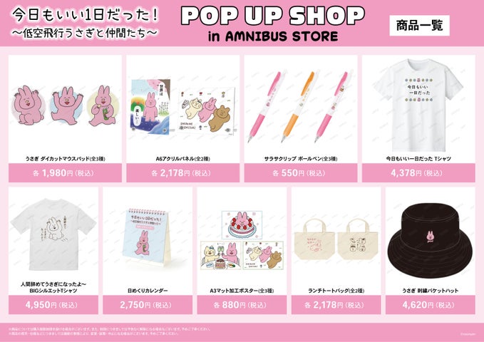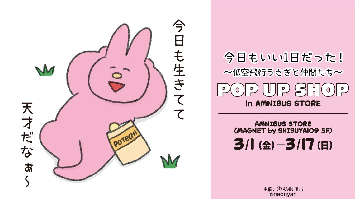 株式会社アルマビアンカは、「AMNIBUS STORE」にて「『今日もいい1日だった!〜低空飛行うさぎと仲間たち〜』 POP UP SHOP in AMNIBUS STORE」を開催します。