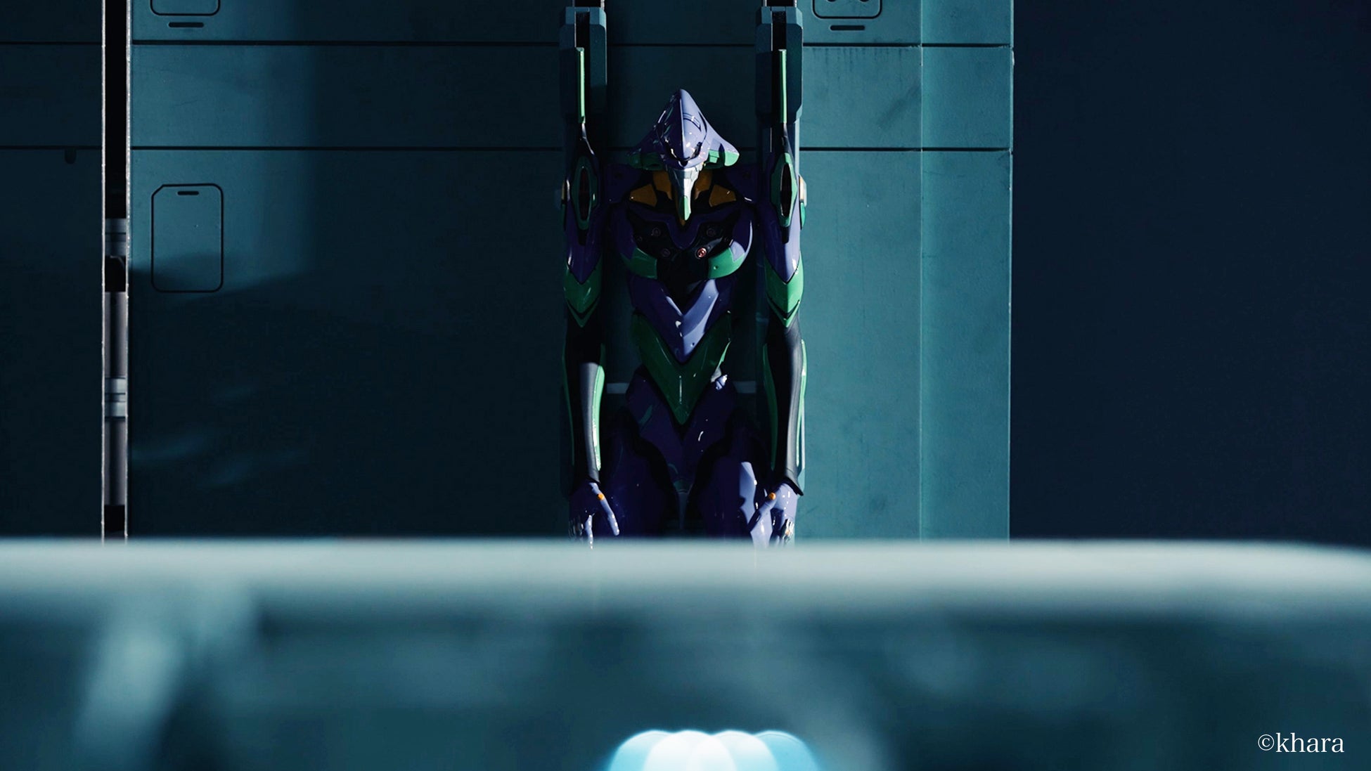 初号機が射出レーンを移動し、地上に発進する様子や格納庫の指令室の再現など、精巧な動くミニチュアが楽しめます。