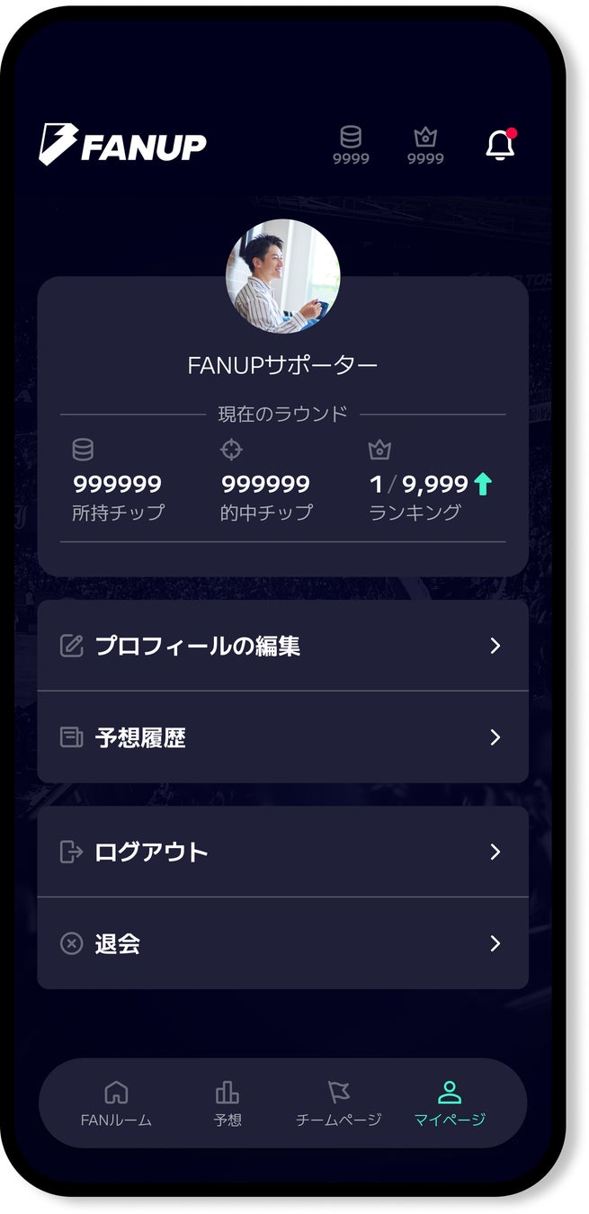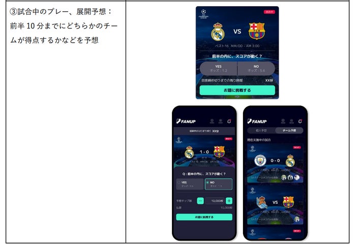 - ユーザーは無料のチップを使って試合の勝敗や展開を予想し、的中率に基づいたランキングで競い合うことができる