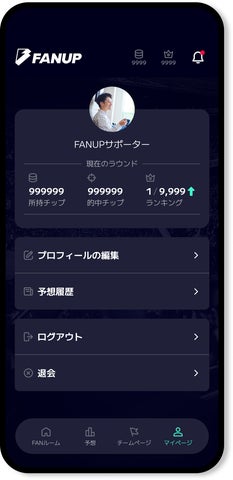 ユーザーは無料のチップを使って試合の勝敗や展開を予想し、的中率に基づいたランキングで競い合うことができます。