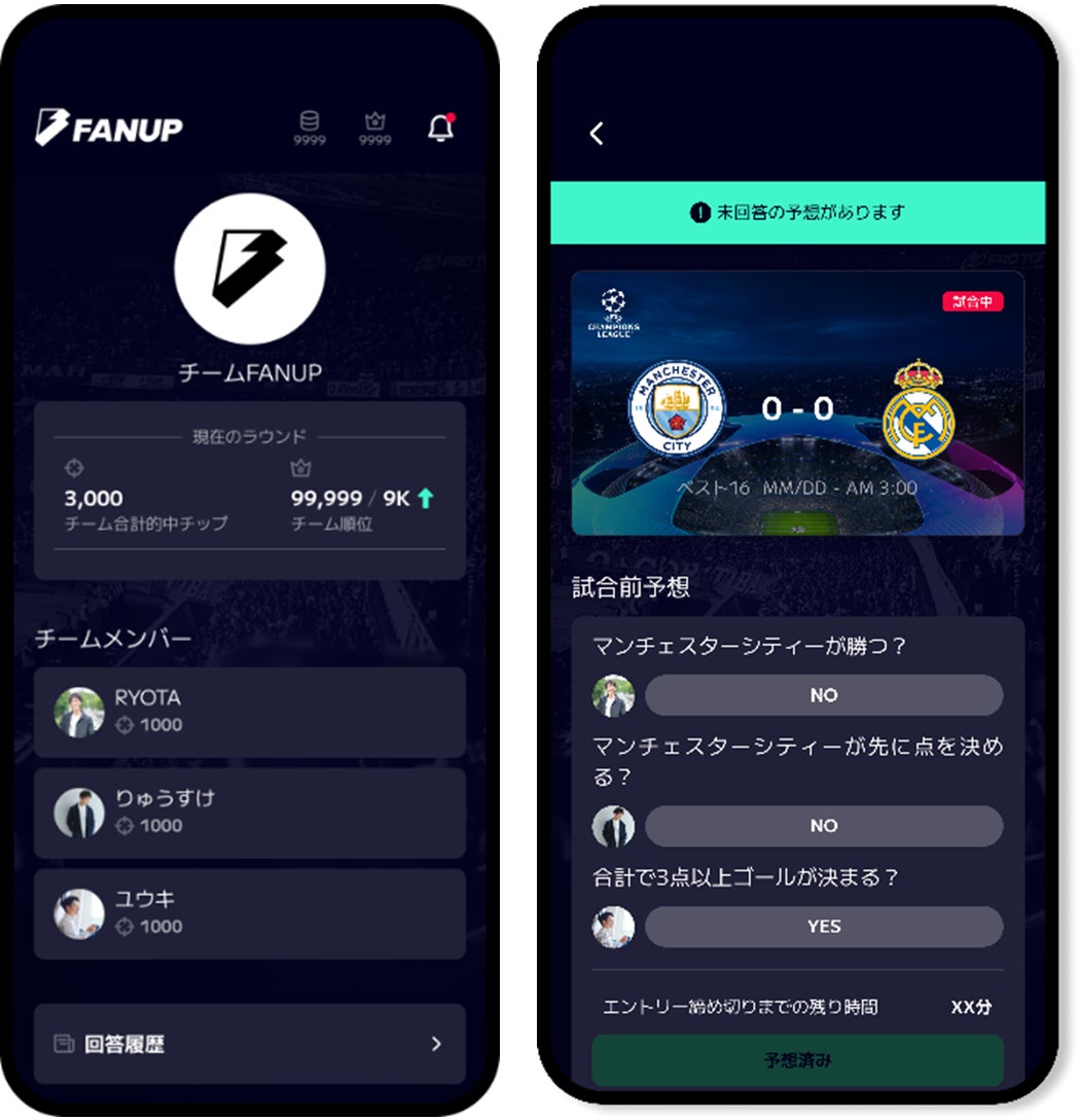 - 「FANUP」は、WOWOWが放送配信する「UEFAチャンピオンズリーグ」と「UEFAヨーロッパリーグ」を中心にしたスポーツSNS