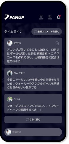 「FANUP」は、WOWOWが放送・配信する「UEFAチャンピオンズリーグ」と「UEFAヨーロッパリーグ」を中心にしたスポーツSNSです。