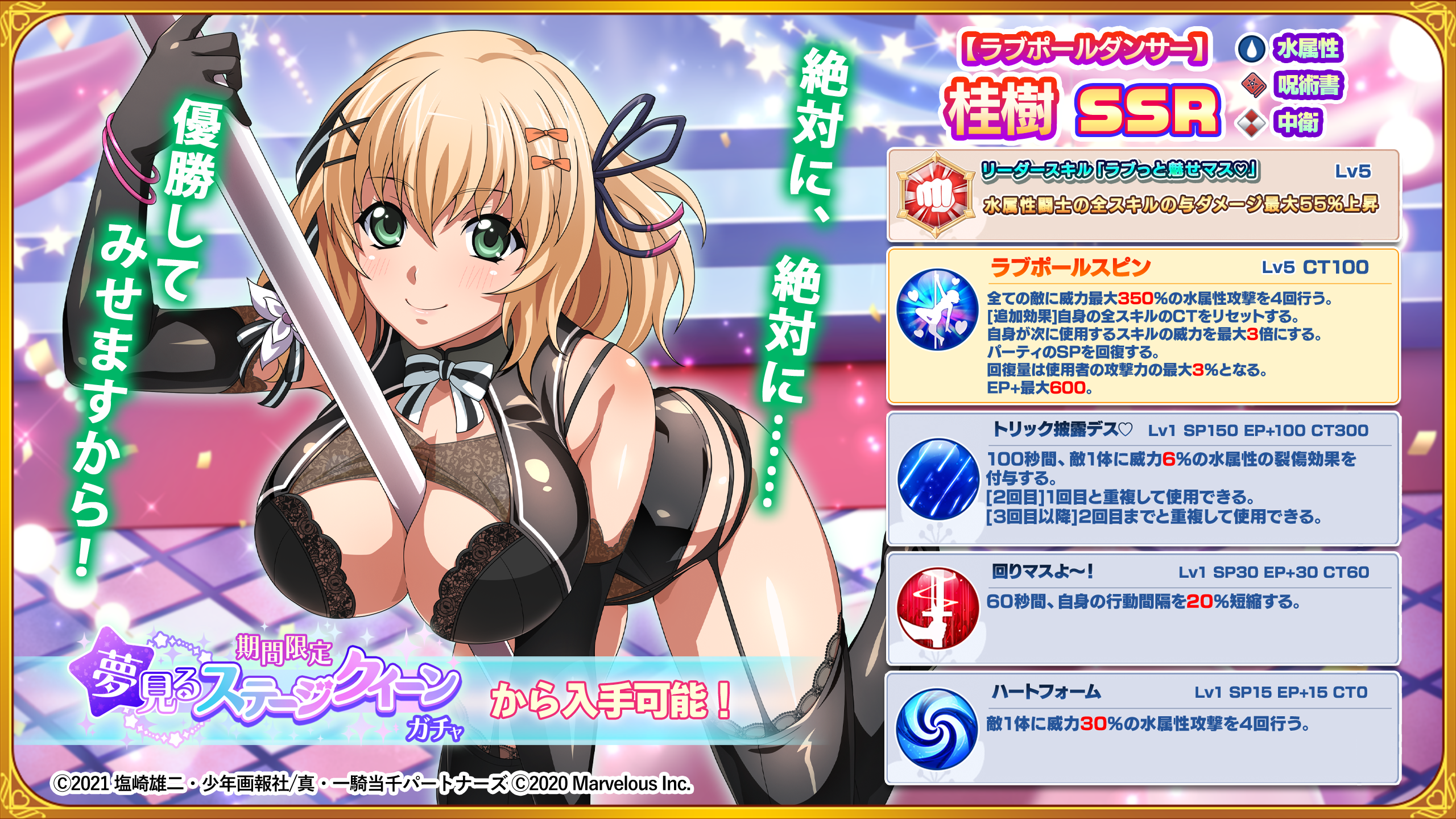 期間中は記念ガチャやログインボーナスがあり、新キャラクター「桂樹」が登場する「夢見るステージクイーンガチャVol.1」も開催される。