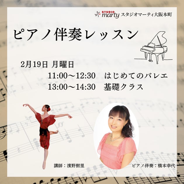 - スタジオマーティ大阪本町で2024年2月19日にピアノ伴奏レッスンが開催される
