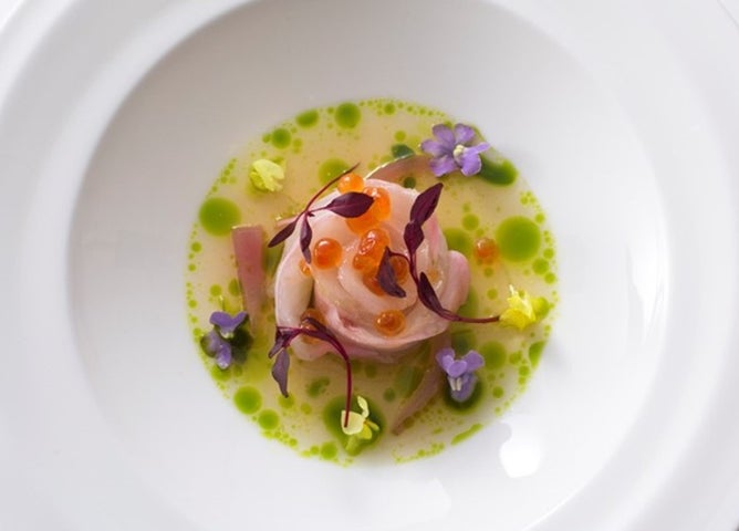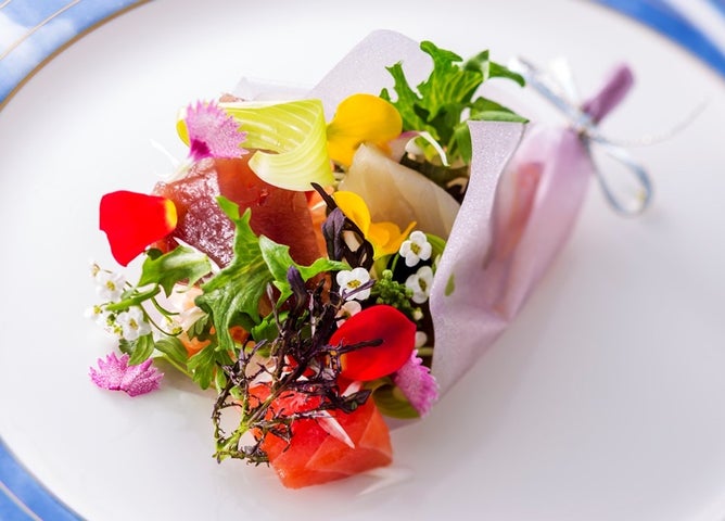 - 「グルマン橘」では京都産野菜や旬の食材を使った美しい料理を提供