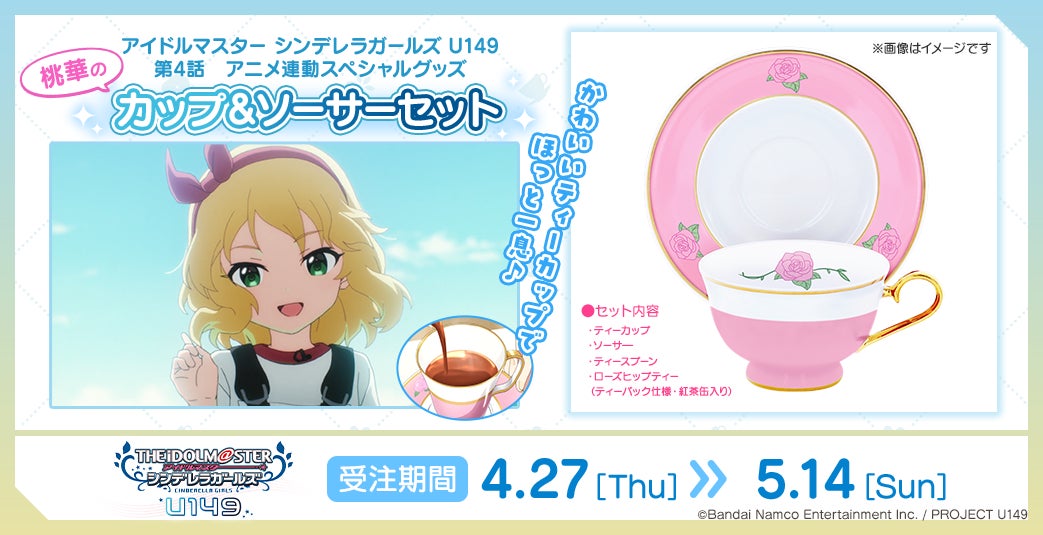 商品内容:第4話アニメ連動スペシャルグッズは櫻井桃華のカップ&ソーサーセット!