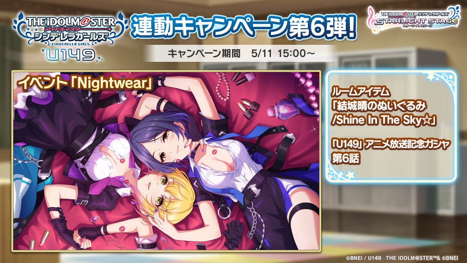 5月11日(木)15:00よりデレステにて、イベント「Nightwear」などTVアニメ「U149」連動キャンペーン第6弾を開催!