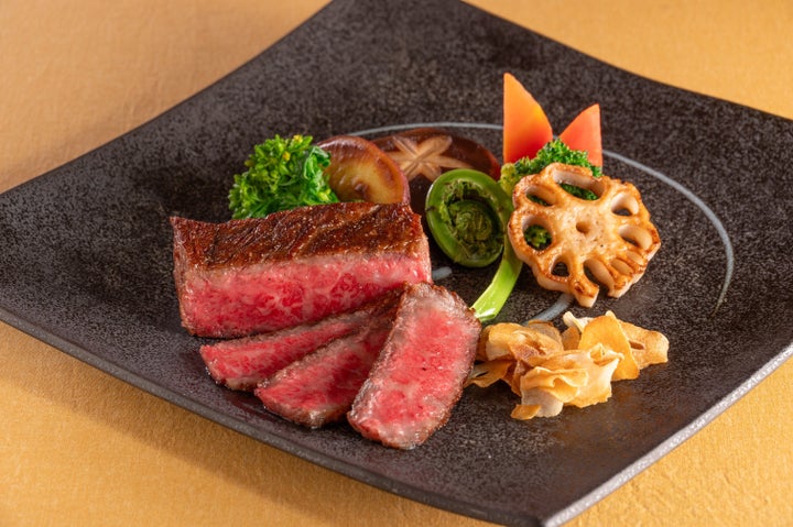 - 鉄板焼の「みや美」では常陸牛や車海老のディナーコースを提供