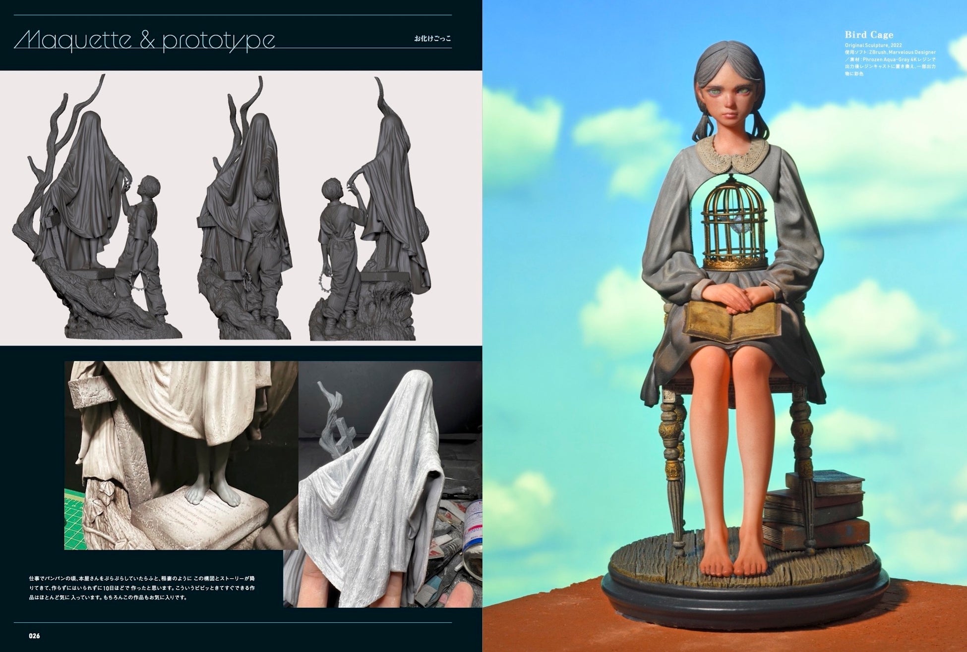 20ページにわたる造形メイキングでは、エスキースから始まり、服や靴の裏技、透けるビニールの作り方、質感のある肌の塗装まで詳しく解説されています。