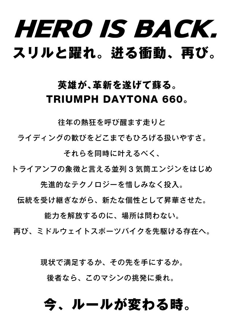 - Triumph MotorcyclesがDaytona 660の発表試乗会を開催