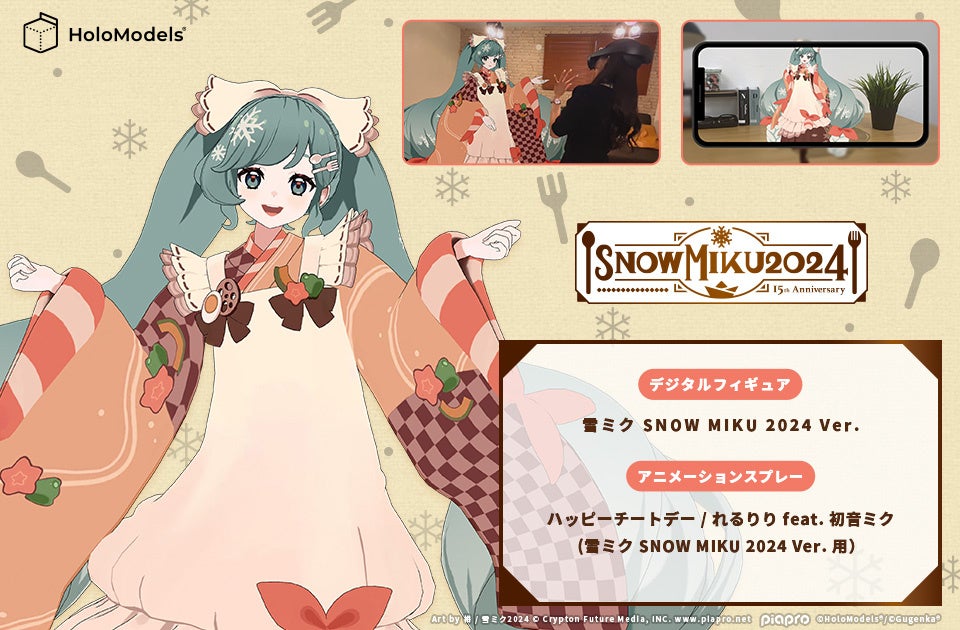 Gugenka株式会社は、2024年2月10日(土)・11日(日)に、スマートフォンやMeta Quest3/Proに対応した「雪ミク(初音ミク)」のデジタルフィギュアとSNOW MIKU 2024のテーマ曲「ハッピーチートデー」の楽曲アニメーションを販売します。
