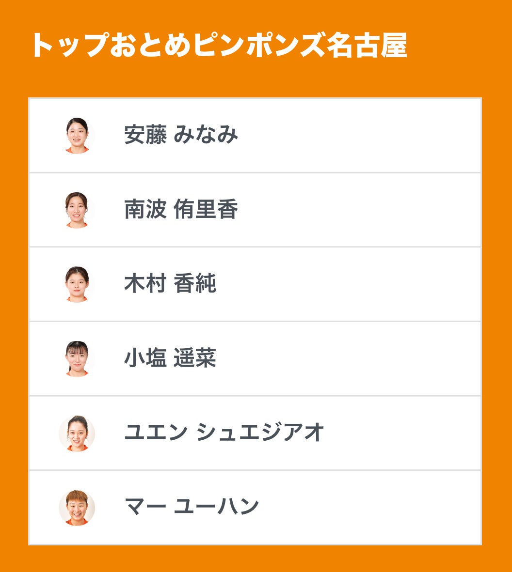 ノジマTリーグ 2023-2024シーズン 公式戦 2月12日開催 トップおとめピンポンズ名古屋 vs 京都カグヤライズ ベンチ入り選手発表