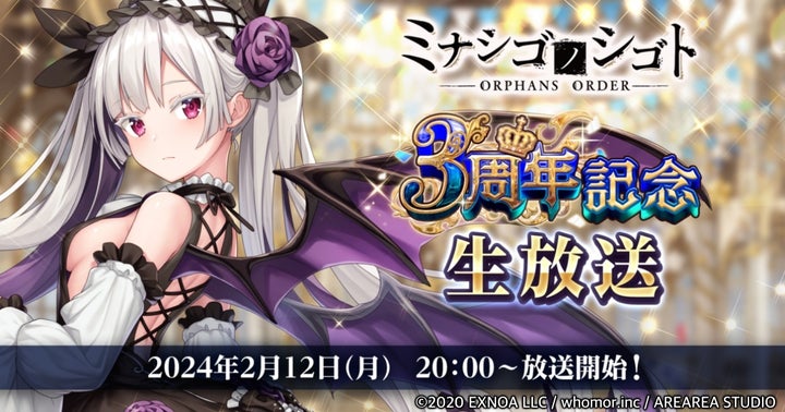 本日2月12日(月)20時から、『ミナシゴノシゴト』のサービス開始3周年を記念した生放送が、ニコニコ生放送およびYouTube Liveで配信されます!この生放送では、新キャラクター情報や新イベントの予告、改修項目などのアップデート情報が発表されます。
