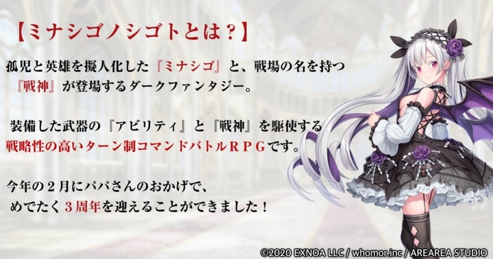 - 『ミナシゴノシゴト』のサービス開始3周年を記念した生放送が本日20時から配信
