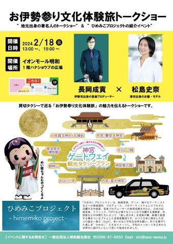 トークイベントは2024年2月18日にイオンモール明和で行われます。