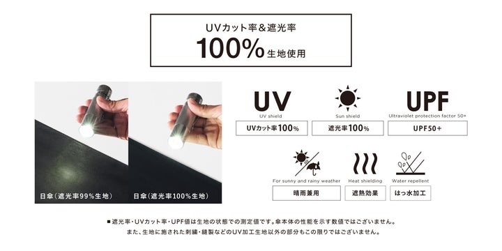 さらに、UVカット率&遮光率100%の生地を使用しており、暑い日でも安心して使用できます。