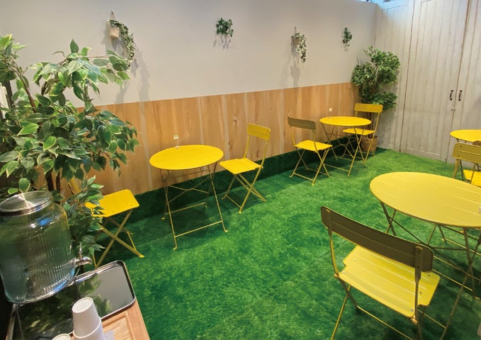 • 店内は芝生が広がるイートインスペース