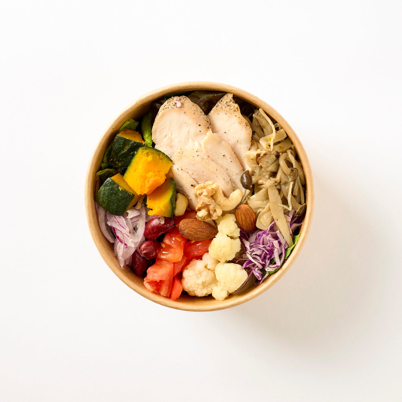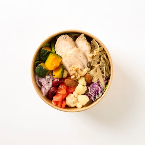 • パワーサラダには野菜とたんぱく質のお肉が入っている