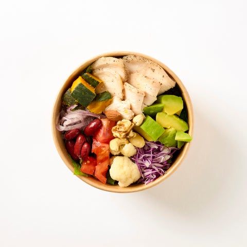パワーサラダには、ビタミンやミネラルが豊富な野菜とたんぱく質が含まれたお肉が盛り込まれています。