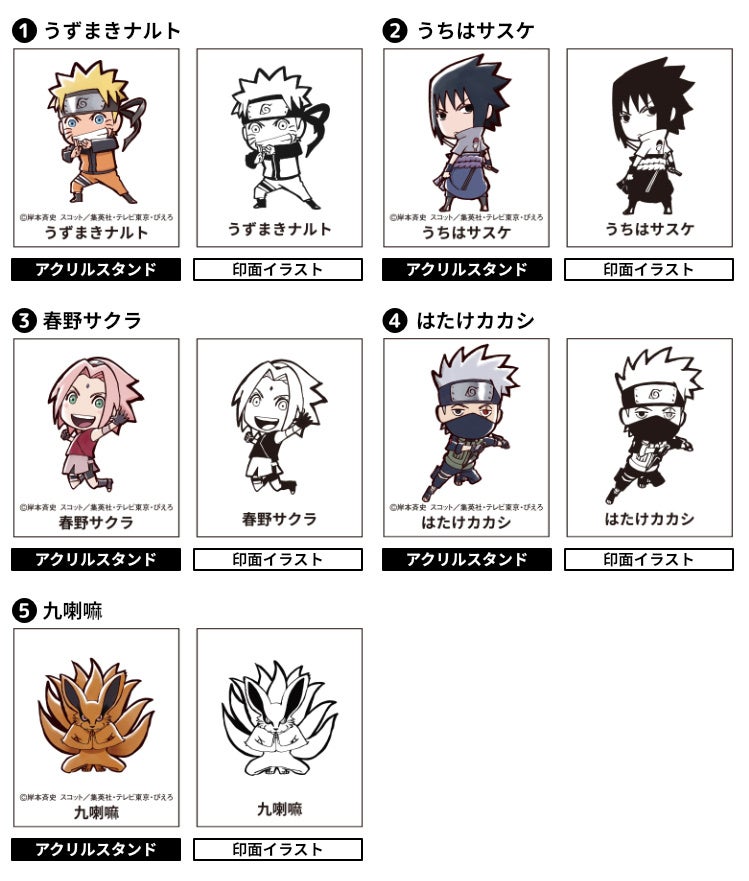 ナルトやサスケなど5種類のデフォルメキャラクターから選ぶことができます。