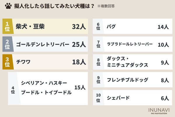 また、無人島に連れて行きたい犬種としては、ゴールデンレトリーバーが最も人気でした。
