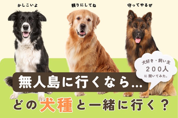無人島に連れて行くなら、ゴールデンレトリーバーやシェパード、柴犬が人気であり、その理由として、頼りになる性格や癒しを与えてくれるという点が挙げられました。