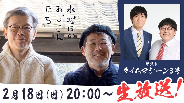 お笑いコンビ・タイムマシーン3号が『水曜日のおじさんたち』に初登場!2月18日(日)20時より生配信!