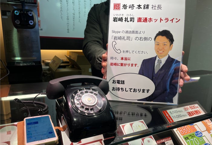- 西浜町店では社長と直接話すことができる「社長直通ホットライン」も設置されている