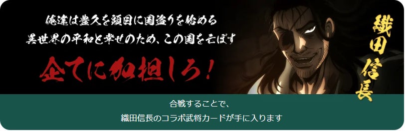 - クエストやログインプレゼントでコラボ武将カード入手可能