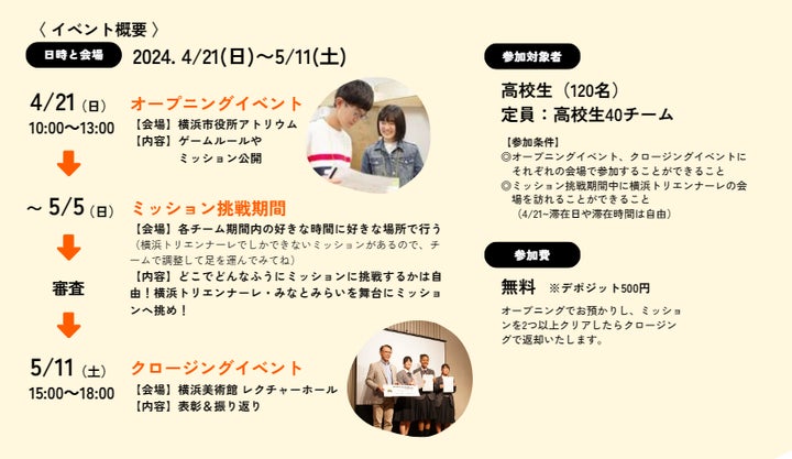 挑戦期間は4月21日から5月5日で、クロージングイベントで優秀チームが表彰されます。