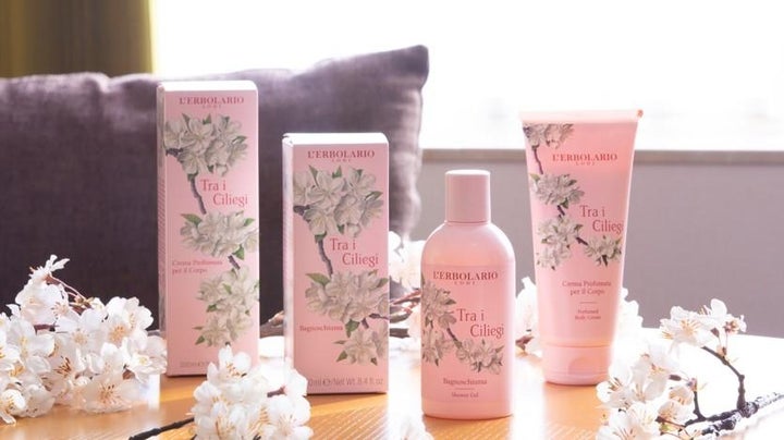 桜の季節に合わせて、自然由来の「L’ERBOLARIO」とのコラボレーションで、桜とチェリーの香りのシャワージェルとボディクリームを提供しています。