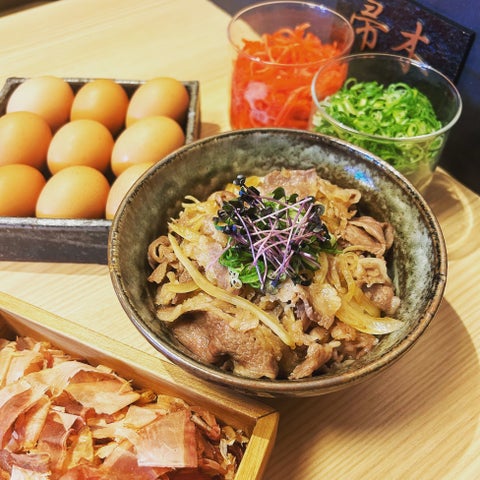 - 茨城県産の赤卵や九条ネギ、紅生姜などの薬味が食べ放題